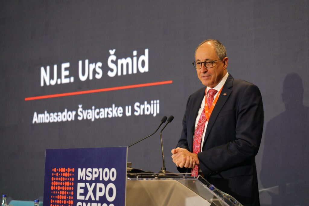 Ambasador Švajcarske u Srbiji, NJ.E. Urs Šmid, je poručio da mala i srednja preduzeća, koja zapošljavaju 99 odsto ljudi, čine okosnicu ekonomije. „Danas je više nego ikada izazov zadržati talentovane i motivisane ljude, što je problem sa kojim se suočavaju i mala i srednja preduzeća. Švajcarska u Srbiji ima nekoliko projekata posvećenih podsticanju razvoju ljudskog kapitala. Kroz projekat Znanjem do posla (Education to Employment/E2E) razvijamo talente mladih i pružamo podršku njihovom obrazovanju za tržište rada, dok kroz projekat SME Hub mala i srednja preduzeća dobijaju podršku u modernizaciji i transformaciji koje su neophodne za integrisanje u globalne lance snabdevanja, posebno u domenu ispunjavanja standarda i zahteva stranih tržišata“, rekao je ambasador Švajcarske.
